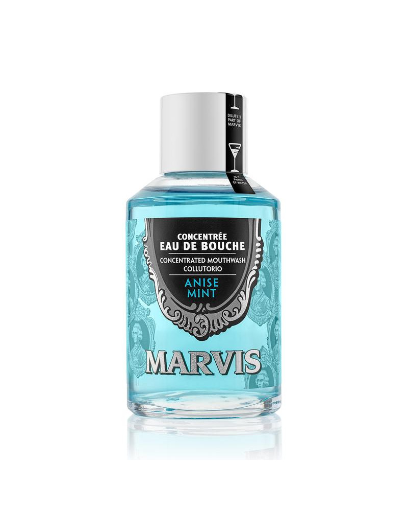 Marvis Eau De Bouche is een geconcentreerd mondwater dat zorgt voor een effectieve mondhygiëne en een langdurige, explosieve frisheid. De unieke mix van munt en anijs, verrijkt met pittige tonen, geeft een originele en onmiskenbare smaakbeleving.