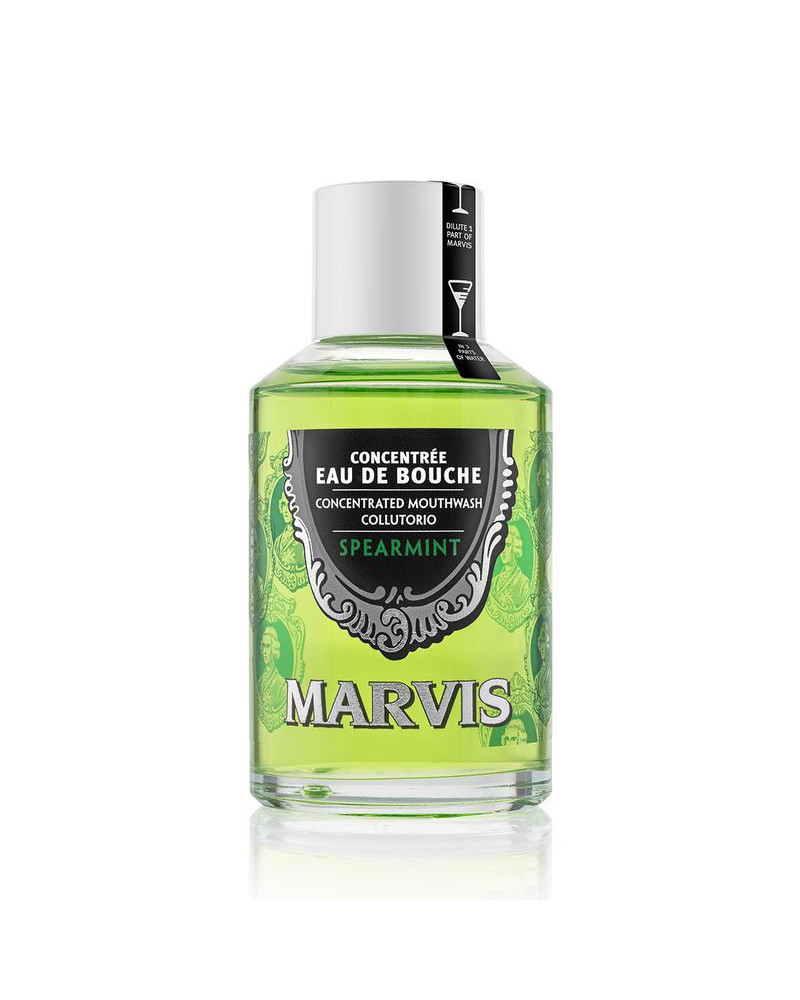 Marvis Eau De Bouche is een geconcentreerd mondwater dat zorgt voor een effectieve mondhygiëne en een langdurige, explosieve frisheid. Een mix van pepermunt en zoete aromatische kruiden zorgt voor een frisse en intense smaak in deze geconcentreerde mondspoeling.