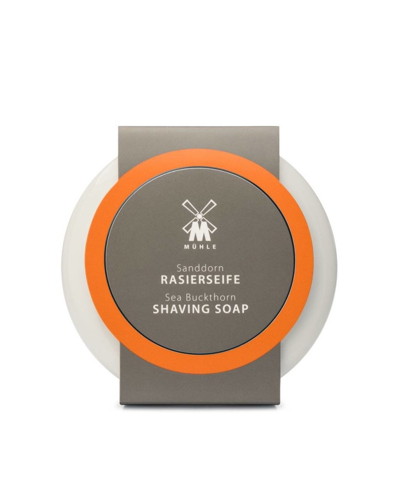 Sea Buckthorn scheerzeep in duurzame porseleinen kom met deksel. Inhoud: 65g. Kalmerende en hydraterende scheerzeep verrijkt met Duindoorn. Ø 60mm. De scheerzeep wordt gebruikt met een scheerkwast en geeft een mooi romig schuim. MÜHLE Sea Buckthorn is gemaakt voor alle huidtypen. Frisse fruitige verzorging voor een perfecte scheerbeurt. De lijn is samengesteld uit natuurlijke ingrediënten. Duindoorn extract is rijk aan palmitinezuur dat op natuurlijke wijze huidregeneratie ondersteunt. Sea Buckthorn is fris met fijne geurnotities van limoen en sinaasappel.