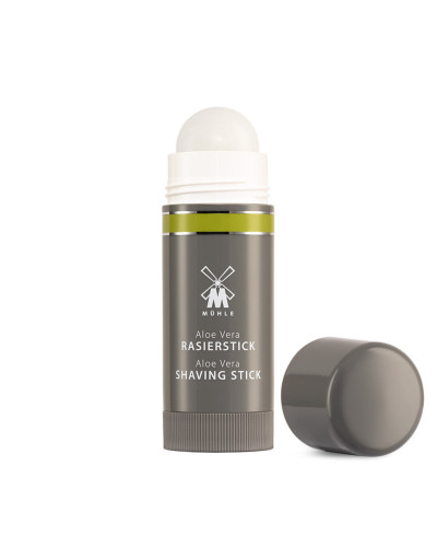 Aloë Vera Scheerstick 37g. Kalmerende en hydraterende scheerzeep verrijkt met Aloë Vera. Ideaal voor op reis. Met of zonder kwast te gebruiken en geeft een mooi romig schuim. MÜHLE Aloë Vera is speciaal ontwikkeld voor gevoelige huid, maar natuurlijk ook geschikt voor alle andere huidtypen. De werkelijke stof wordt geëxtraheerd vanuit de binnenkant van gekweekte aloëplanten van het Middellandse Zeegebied. De natuurlijke ingrediënten kalmeren en verfrissen de huid en de zintuigen tijdens het scheren. Aloë Vera is zacht en verzorgend met fijne noten van eikmos en munt.