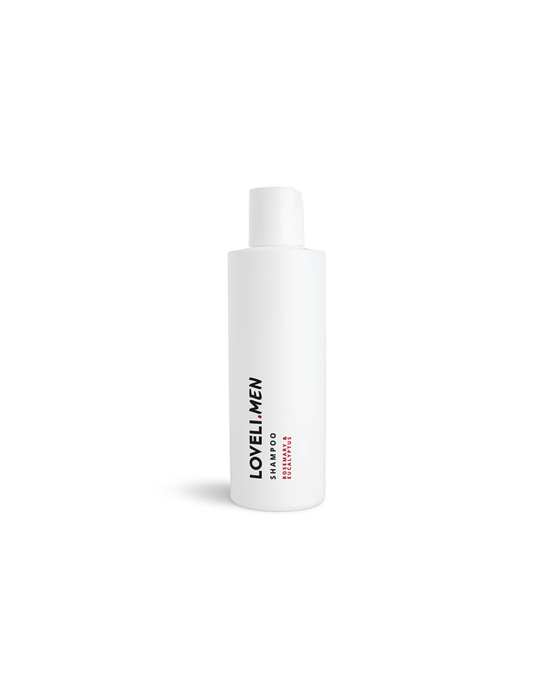 Troepvrije shampoo speciaal ontwikkeld voor en met de Loveli mannen. Zonder de agressieve reinigers SLS en SLES (Sodium Lauryl Sulfate en Sodium Laureth Sulfate). Ideaal voor dagelijks gebruik en geschikt voor alle haartypes. Voor net wat extra volume. De geur van rozemarijn en eucalyptus geeft je een oppepper onder de douche.