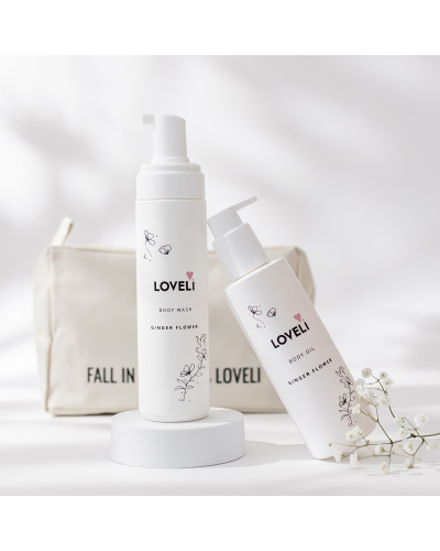 De Body oil Ginger Flower is een limited edition versie. Ginger Flower is een zacht bloemige geur, met precies genoeg pit. Een frisse bloemengeur met een warme gembertwist. Instant happiness! Met net wat meer geur dan je van Loveli gewend bent. De Loveli Body oil Ginger Flower is geschikt voor de droge huid die wel wat extra voeding kan gebruiken. De body oil is gemaakt van 5 verschillende plantaardige oliën die samen een combinatie van vetzuren bevatten welke sterk lijken op de vetzuren van je eigen huid. En dat zorgt voor een optimale voeding en het helpt ook het beschermlaagje van je huid te herstellen. Het unieke design maakt het het ideale cadeau voor de Loveli fans. De Ginger Flower geur is er maar even, dus als je hart er sneller van gaat kloppen… wacht dan niet te lang.