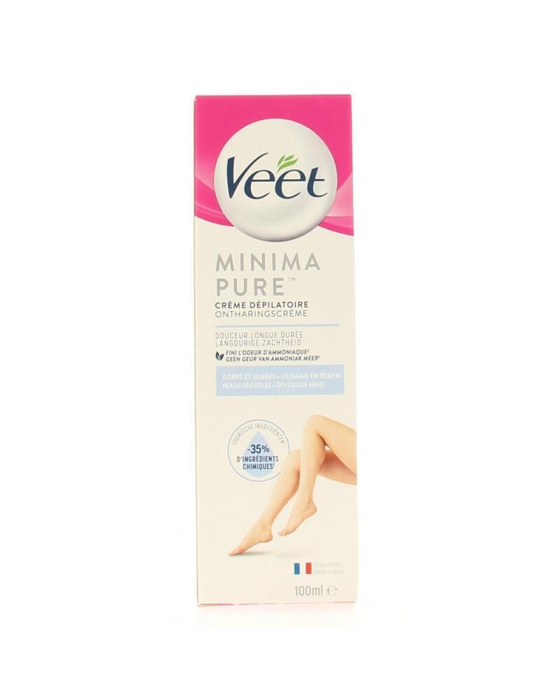 Ontdek de Minima™ ontharingscrème van Veet: een formule met 35% minder chemische ingrediënten* voor een zijdezachte huid met een frisse parfum. Deze verpakking bevat 1 creme tube 100ml en 1 spatel.* vergeleken met de vorige formule met dezelfde geurbasis