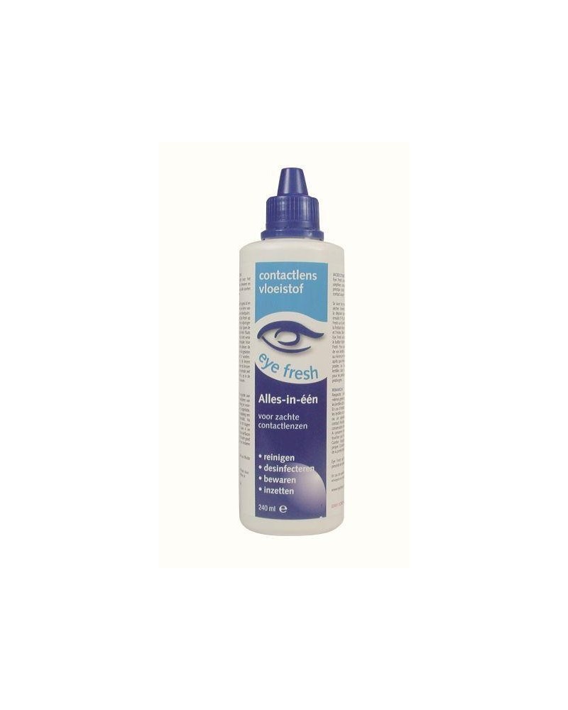 Was uw handen, spoel ze goed af en maak ze droog met een schone handdoek. Neem de lens van uw oog en leg deze in uw handpalm. Giet nu 5-10 druppels Eye Fresh op de lens en wrijf met uw wijsvinger de lens voorzichtig schoon. Spoel de lens grondig af met Eye Fresh vloeistof. Plaats de lens vervolgens in de met verse Eye Fresh gevulde lenshouder. Voor een optimale desinfectie dienen de lenzen minimaal 4 uur in de gesloten lenshouder bewaard te worden. Na desinfectie kunt u de lenzen direct inzetten.