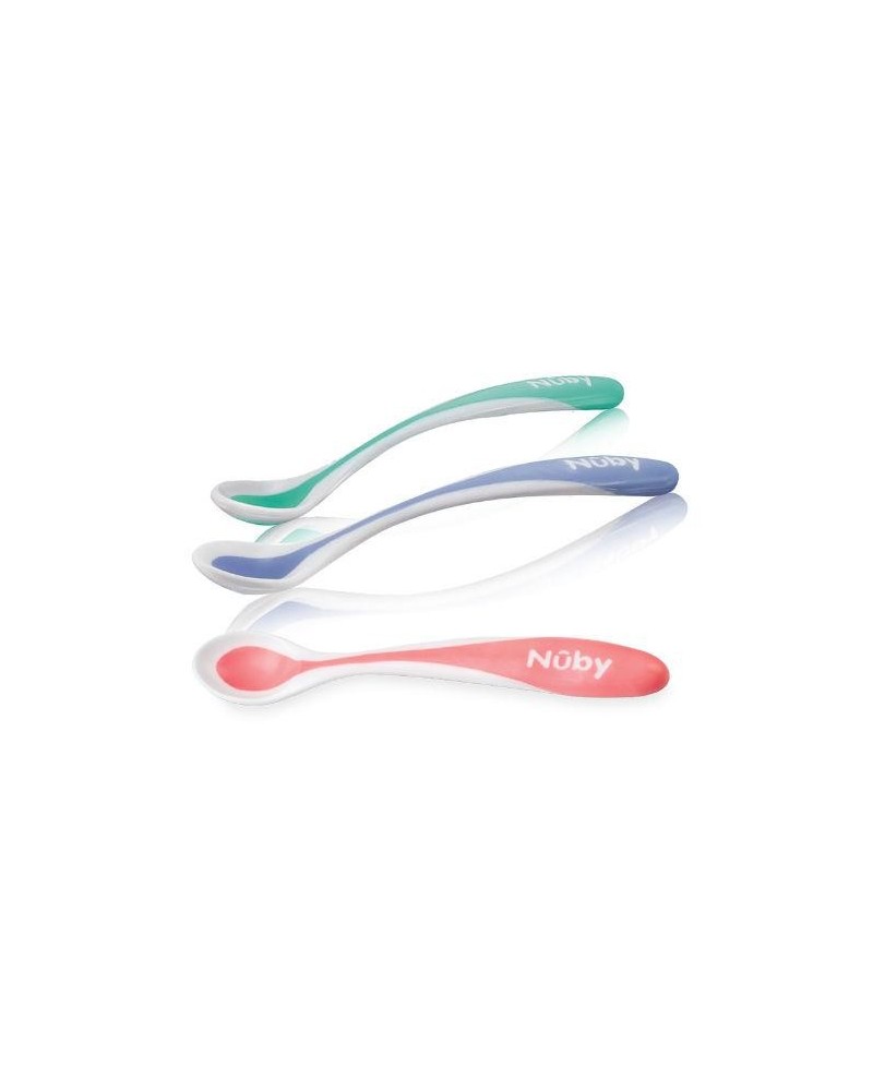 De warmtegevoelige lepeltjes met zachte rand van NûbyTM zijn de perfecte hulp bij het geven van vaste voeding. Zo zijn ze niet enkel zacht voor het gehemelte, maar helpen ze jou om te bepalen wanneer de maaltijd van jouw kleintje te warm is.