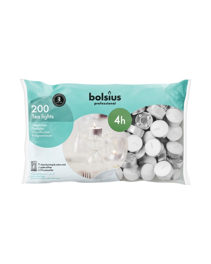 Het theelicht is een kaars die veel gebruikt wordt in horeca. Veilig, schoon, geurloos en makkelijk in gebruik, en subtiel op tafel in een leuke theelichthouder. De warme uitstraling en mooie vlam zorgen voor een avond vol sfeerverlichting met gegarandeerd brandtijd van 4 uur. De vlam is van begin tot eind goed zichtbaar, en makkelijk opnieuw aan te steken.
