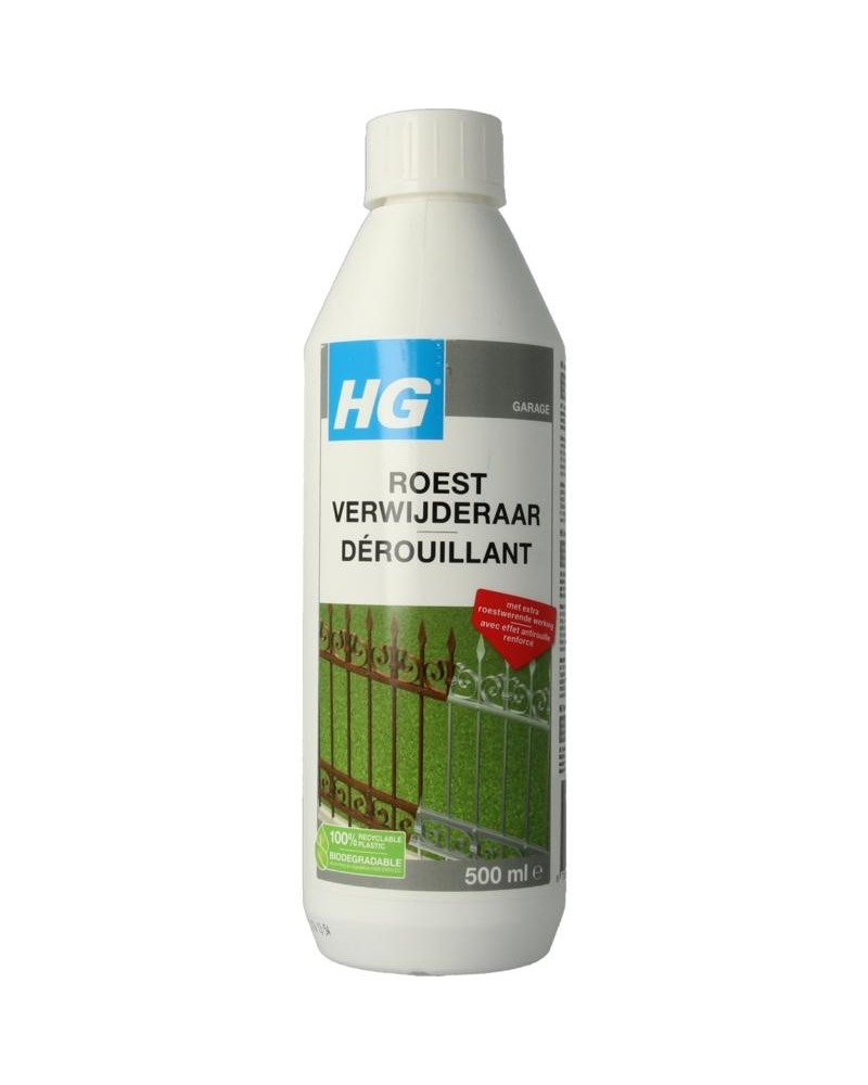 HG roestverwijderaar verwijdert roest zonder te schuren, van onder andere hekken, tuingereedschap, schaatsen, bouten, moeren en gereedschap. De roestomvormer werkt snel en effectief voor het verwijderen van roest op metaal.
