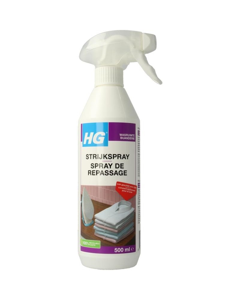 De strijkspray van HG heeft een frisse geur en maakt het mogelijk om op een lagere temperatuur te strijken. Hierdoor gaat het textiel langer mee, zal het stroomverbruik lager zijn en wordt de onderkant van de strijkbout niet vuil.