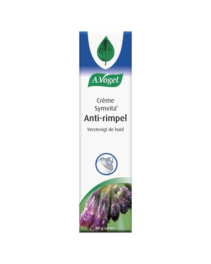 Symvita Anti-rimpel crème ondersteunt het herstellend vermogen van de ouder wordende huid. De voedende crème houdt de huid elastisch. Het helpt rimpelvorming te vertragen en is goed voor het bindweefsel in de huid. De crème bevat onder meer Symphytum officinale (smeerwortel). Deze plant is tevens goed voor de verzorging van littekens.