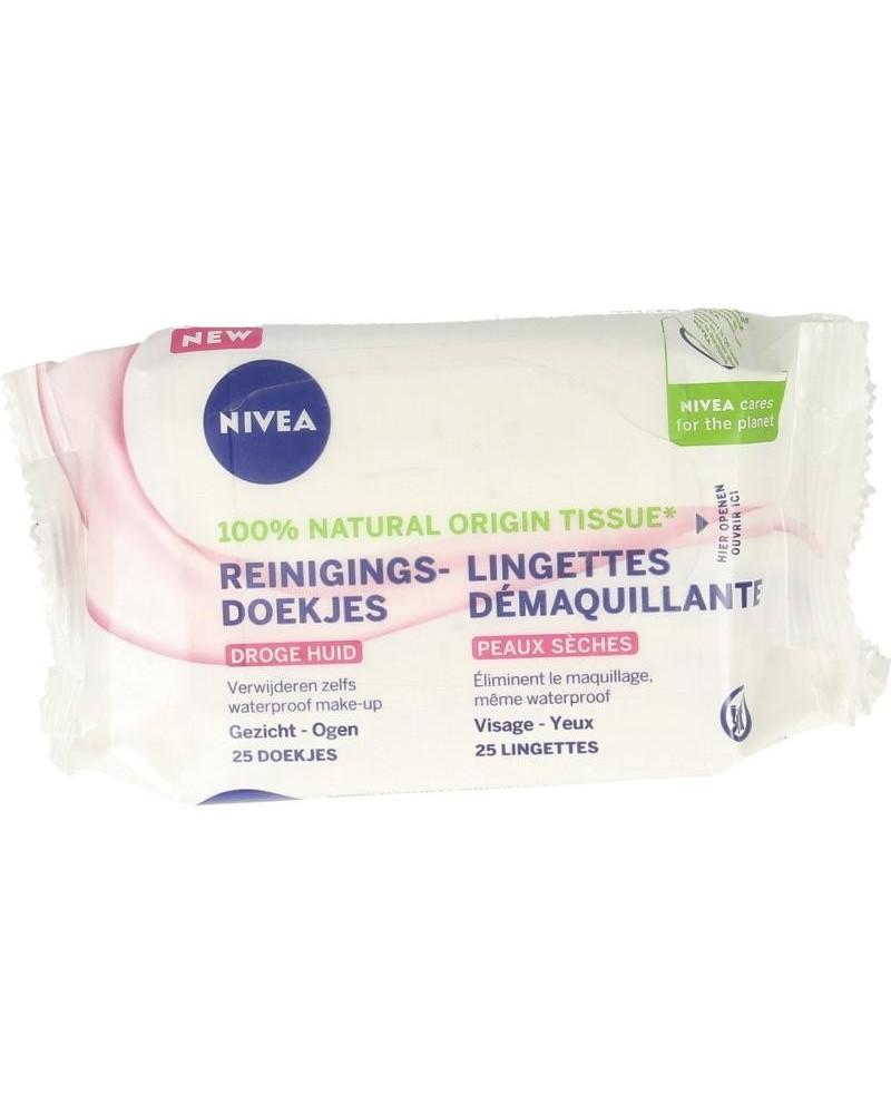 Nivea 3in1 Zachte Reinigingsdoekjes verwijderen doeltreffend zelfs waterproof make-up en mascara, reinigt intensief en hydrateert zodat je huid verfrist wordt. Huidvriendelijkheid dermatologisch oftalmologisch goedgekeurd.