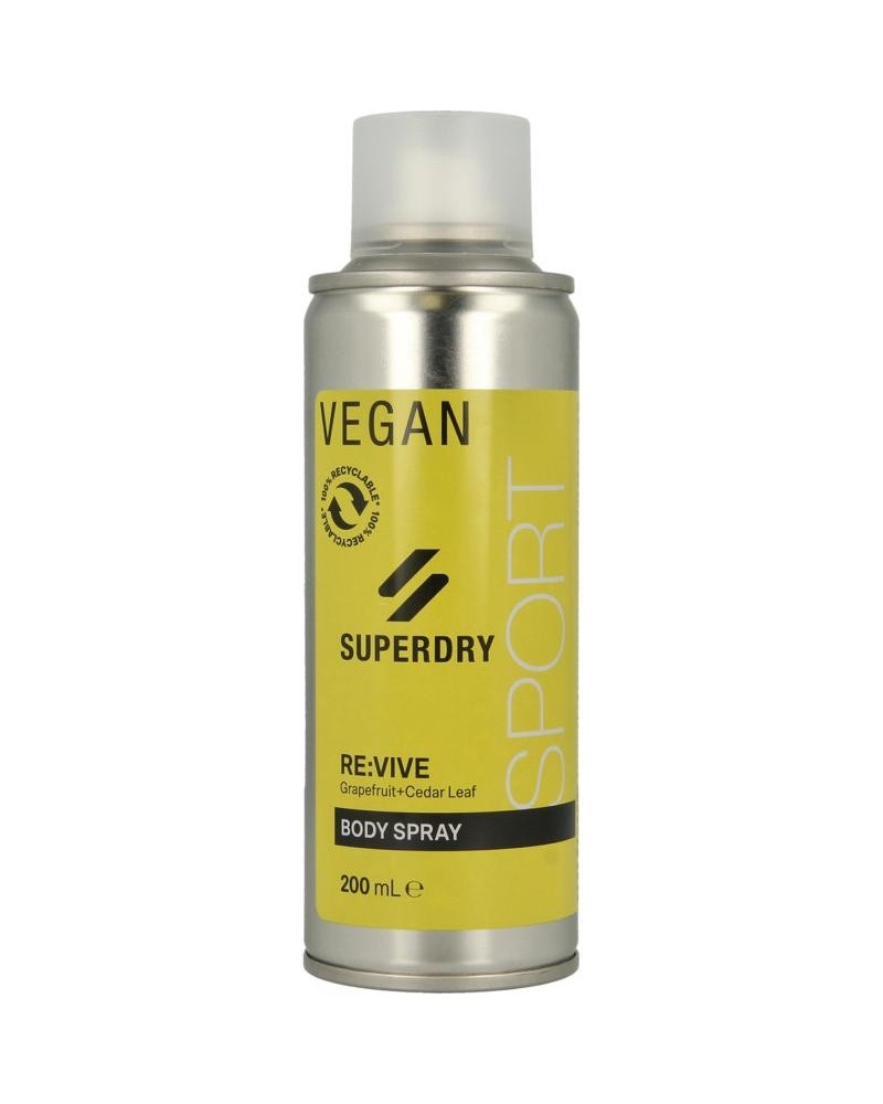 Een herboren gevoel met deze actieve Superdry Sport RE:vive bodyspray voor dagelijks gebruik, verrijkt met frisse geurnoten van kardemom, musk en citroen.