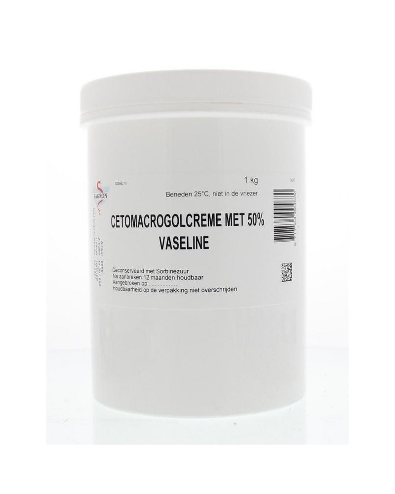Cetomacrogolcrème met 50% vaseline is geschikt voor de zeer droge huid. Deze vette crème houdt de huid soepel en voorkomt verdere uitdroging. Het hoge percentage vaseline in deze vette crème zorgt voor een hoger vetgehalte en dekt de huid af (occlusie) zo kunnen irriterende stoffen van buitenaf de huid niet binnendringen. Deze vette crème draagt bij aan de bescherming van de huid, waardoor de huid minder water afstaat en wordt gehydrateerd.