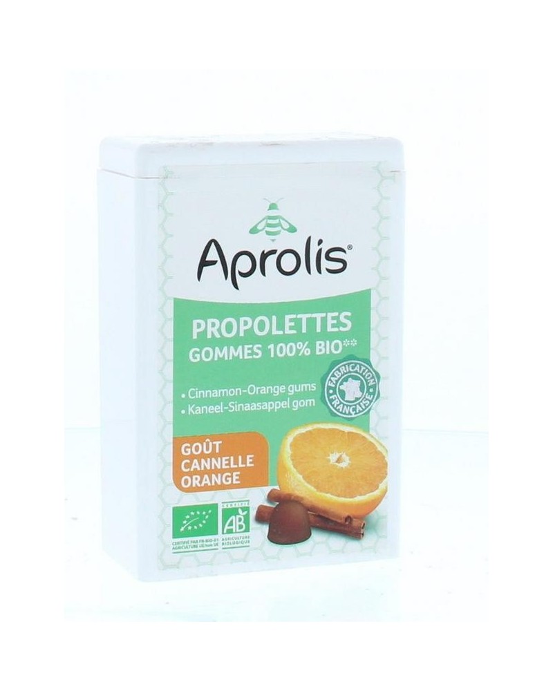 Verdikkingsmiddel: Arabische gom*, siroop* (agave*, rijst*), extracten* (concentraat van 50% PROPOLIS*, kaneel* (0,4%)), essentiële oliën* (sinaasappel* (0,25%), roze mandarijn*), antikleefmiddel* (MACADAMIAOLIE*, antioxideermiddel: tocoferol extract, carnaubawas*).