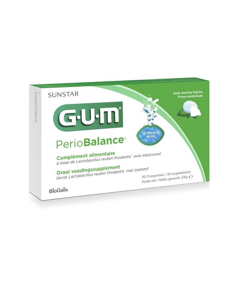 Bevat Limosilactobacillus reuteri Prodentis® met zoetstof.