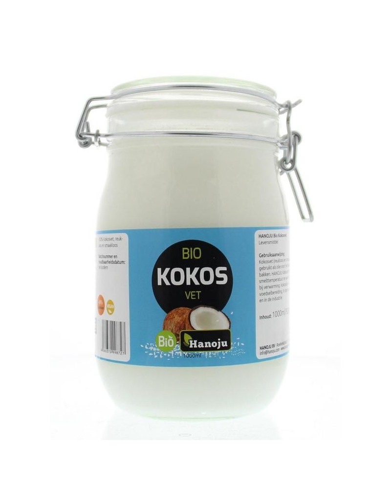 Hanoju Kokosolie geurloos beugelglas bio