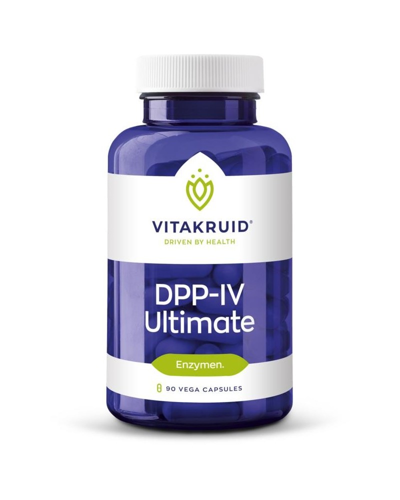 DPP-IV staat voor dipeptidylpeptidase IV, een enzym dat van nature in onze dunne darm voorkomt. DPP-IV Ultimate is een verzameling van drie hoogstaande eiwitsplitsende (protease) enzymvormen. Normaal gesproken levert de eigen enzymproductie voldoende enzymen om het voedsel wat we eten te verteren. Factoren als leeftijd, stress, medicijnen en afwijkingen in het spijsverteringsstelsel, kunnen echter de enzymproductie verstoren. DPP-IV kan dan een waardevolle aanvulling op het voedingspatroon vormen!