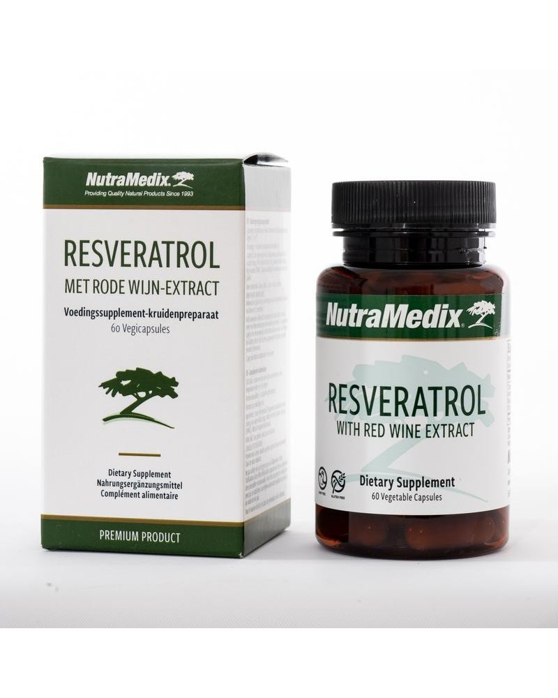 Trans-Resveratrol van Japanese Duizendknoop wortelextract, Rode Wijn (Vitis vinifera) Extract, Microcrystalline Cellulose, Vegetable Capsule, Silica, Vegetable Magnesium Stearate