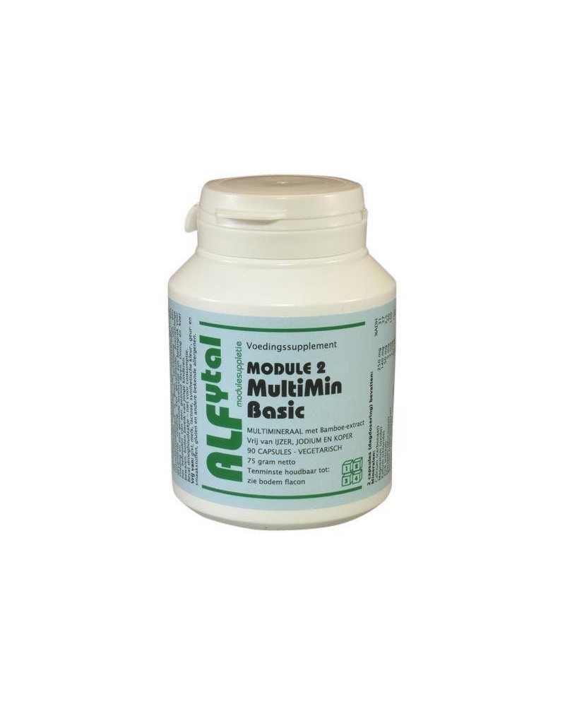 Een basale multimineraal zonder ijzer, koper en jodium. Derhalve uitermate geschikt voor mensen die geen extra ijzer mogen hebben (ijzerstapelingsziekte), of geen extra koper (koperstapeling – Ziekte van Wilson), of geen extra jodium (thyreotoxicose). Verder is extra ijzer niet aan te bevelen als er voldoende ijzer in het lichaam aanwezig is. Een hoog ijzergehalte kan pro-oxidatief werken en er zijn aanwijzingen dat dit weer kan leiden tot verhoogd risico op arteriosclerose. Vrouwen in de menopauze en mannen dienen terughoudend te zijn met het innemen van extra ijzer. Bloeddonors en vrouwen die menstrueren kunnen mogelijk beter een product met ijzer gebruiken (MultiMin Medium). Aan deze formule is bamboe-extract toegevoegd als bron van silicium. Bevat geen dierlijke ingrediënten, dus geschikt voor vegetariërs. Door het ontbreken van mogelijk allergene stoffen uitermate geschikt voor mensen met een (voedings)allergie. Goed slikbare capsule. Inhoud mag uit capsule worden gehaald.