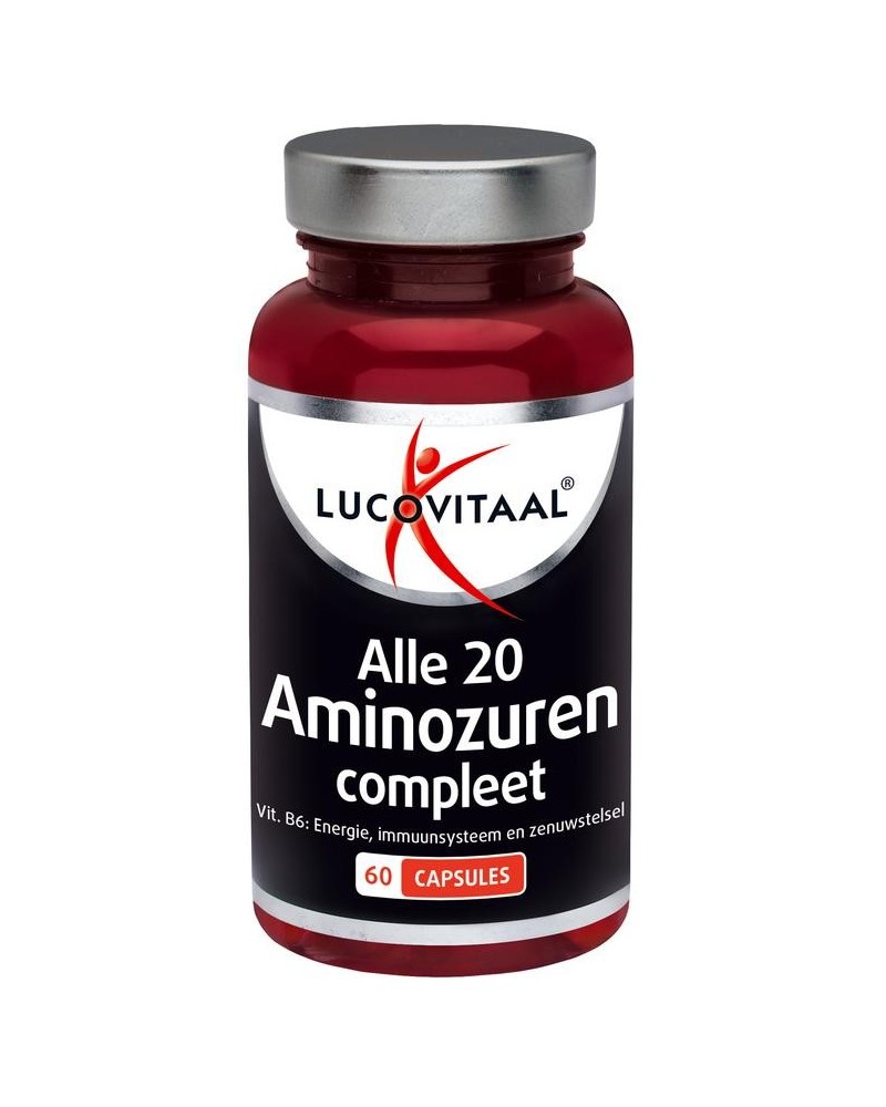 Alle 22 Aminozuren Compleet van Lucovitaal® bevat alle 22 (essentiële en niet-essentiële) aminozuren, daarnaast bevat het ook vitamine B6.
