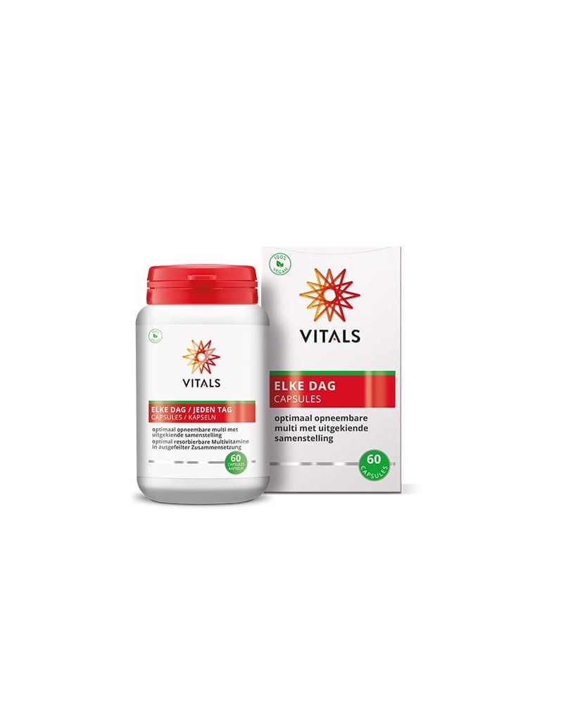 Net als de andere multi’s in de Elke Dag-serie onderscheidt dit product zich door de samenstelling, en de gekozen ingrediënten en vitamine- en mineraalverbindingen. Zo bevat deze formule vitamine D3, K1, K2, de biologisch actieve vormen van B2, B6, B12 en wordt gebruikgemaakt van een superieure biologisch actieve vorm van foliumzuur (5-MTHF met de merknaam Quatrefolic®). De vitamine C bestaat uit de niet-zure, goed opneembare vorm van magnesiumascorbaat. De mineralen bestaan uit uitstekend opneembare verbindingen. Bovendien zijn de doseringen gebaseerd op de meest recente wetenschappelijke inzichten, en afgestemd op actuele gegevens aangaande de voedingsstatus in Nederland en de optimale innamehoeveelheden per nutriënt.