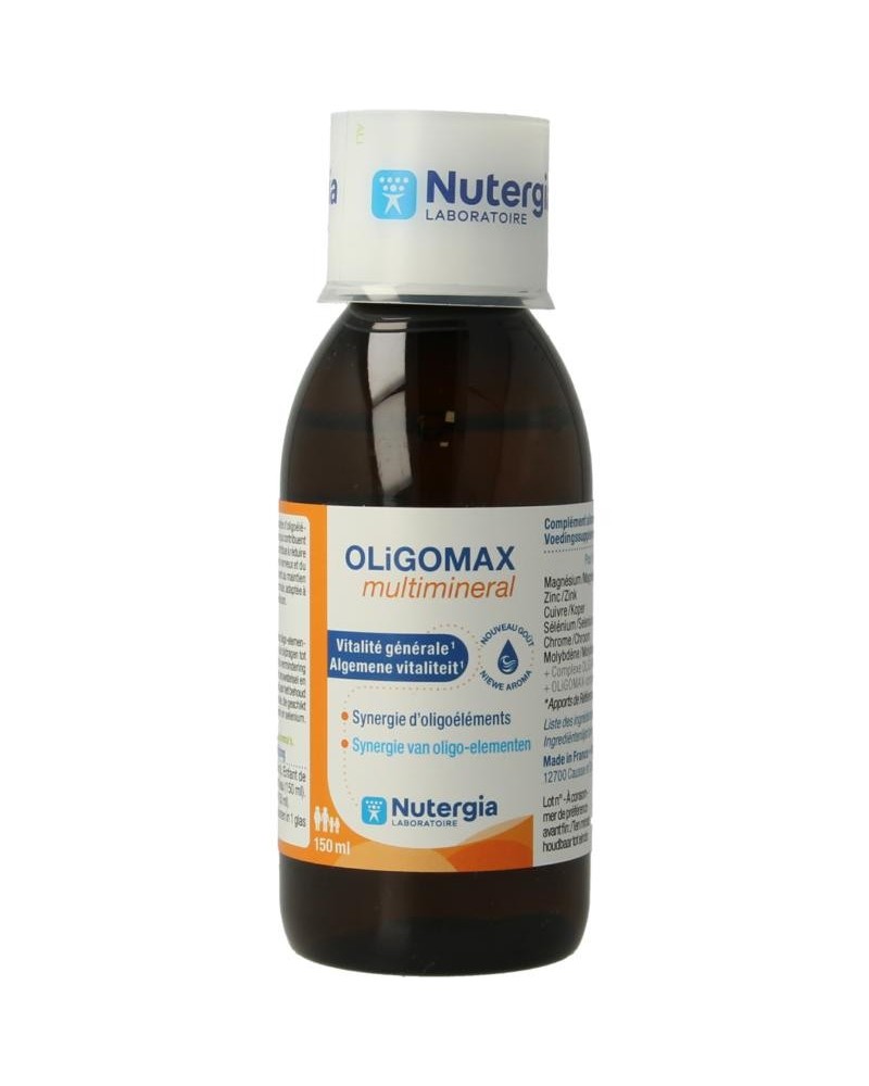 Vloeibare oplossing van oligo-elementen (gefilterd water, geconcentreerd ontzilt zeewater, gepatenteerd gestandaardiseerd lithothamniumextract - Phymatolithon calcareum Pall., zink-, ijzer- en kopergluconaat, chroomchloride, mangaansulfaat, natriumseleniet en -molybdaat), magnesiumcitraat-malaat, conserveermiddel: kaliumsorbaat; zuurteregelaar: kaliumhydroxide; natuurlijk aroma.