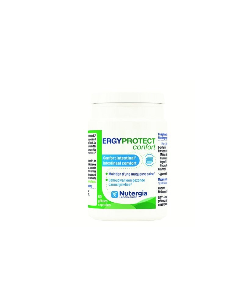L-glutamine, extracten van citroenmelisse (Melissa officinalis L.), kamille (Matricaria chamomilla L.), ui (Allium cepa L.) en kurkuma BCM 95® (Curcuma longa L.), johannesbroodpeptiden (Ceratonia siliqua L.), antiklontermiddel: plantaardig magnesiumstearaat; vitamine B2 (riboflavine). Capsule: visgelatine, kleurstof: ijzeroxide.