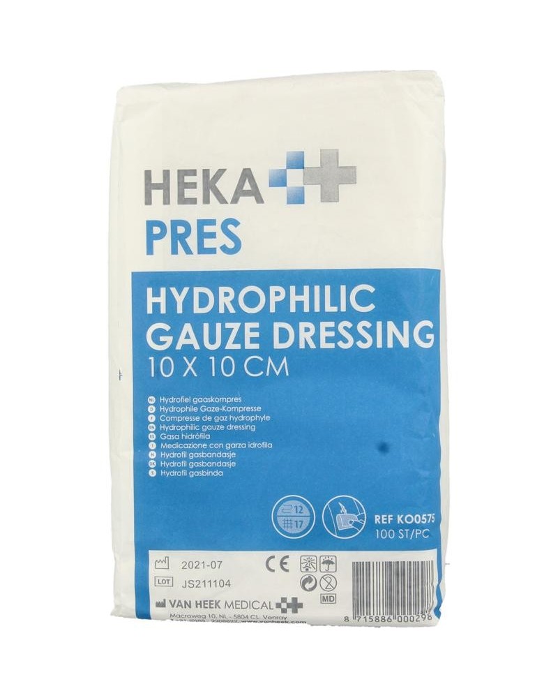 Een HEKA pres hydrofiel gaaskompres kan gebruikt worden voor droge of licht afgevende wonden. Ook kan het kompres gebruikt worden om wonden, huid of instrumenten droog te deppen of te reinigen. Het drainkompres, met Y-vormige inkeping, kan rondom de drain of canule worden aangebracht.