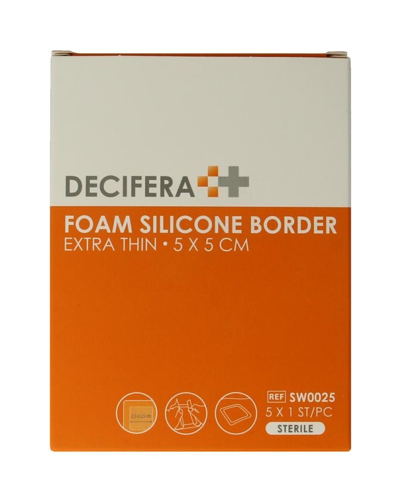 Decifera Foam Silicone Border Extra Thin is een niet verklevend, absorberend schuimverband met een siliconen wondcontactlaag en PU film op de achterzijde. De Foam Silicone Border Extra Thin draagt bij aan een vochtig wondmilieu en bevordert zo een optimaal wondgenezingsproces. Het heeft als functie; absorptie, reiniging en bescherming. Overtollig wondexsudaat wordt opgenomen in de kern van de polyurethaan schuimlaag. Door deze absorptie ontstaat er ook een reinigend effect. De geïntegreerde siliconen laag, biedt bescherming door voorkoming van verkleving van de wond aan het wondverband.