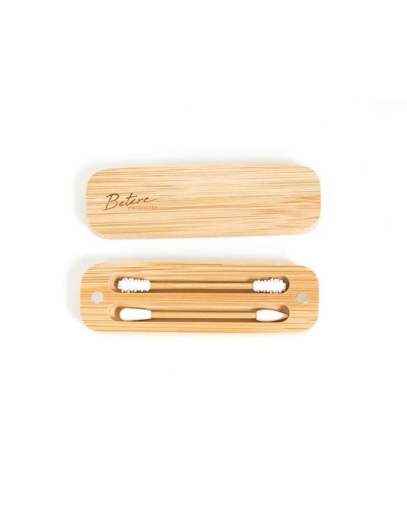 De herbruikbare bamboe wattenstaafjes van Betere Producten zijn een duurzame en milieuvriendelijke keuze voor jouw dagelijkse verzorgingsroutine. Deze wattenstaafjes, verpakt in een handige doos met het Betere Producten logo, zijn ontworpen om het gebruik van wegwerpplastic te verminderen. Gemaakt van bamboe, bieden ze een natuurlijk alternatief dat geen katoenresten achterlaat op je huid of wimpers tijdens het bijwerken van make-up.