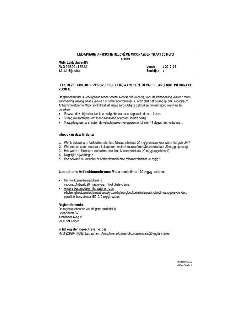 Als u merkt dat Leidapharm Antischimmelcrème Miconazolnitraat 20 mg/g te sterk of juist te weinig