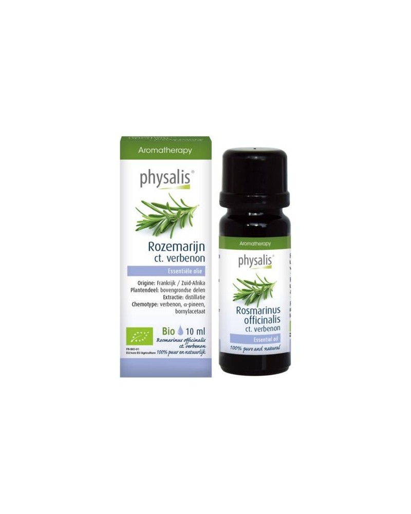 Rozemarijn ct. verbenon is een stimulerende en versterkende olie die bij verstuiving gunstig is voor de luchtwegen. In een huidolie kan deze rozemarijnsoort gebruikt worden voor zijn regenererende werking, ideaal voor de beschadigde of rijpere huid.