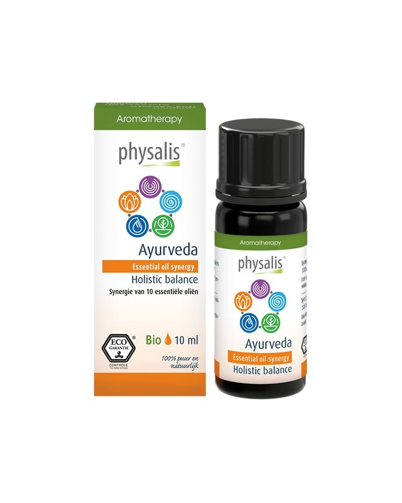 Ontdek de heilzame effecten van de Indiase tradities met Physalis Ayurveda dankzij de synergie van 10 essentiële oliën. Bevat o.a. kruidnagel, gember, zwarte peper, kaneel, kardemom en koriander. Physalis Ayurveda, met zijn kruidige geuren, voert je mee naar een gevoel van welbehagen.