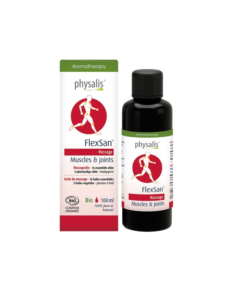 Verzorg je spieren en gewrichten met Physalis FlexSan® dankzij de synergie van 15 essentiële oliën. Bevat o.a. wintergroen, akkermunt, citroeneucalyptus, rozemarijn en gember. Een FlexSan® massage is bij uitstek geschikt om de spieren en gewrichten te laten ontspannen en recupereren.