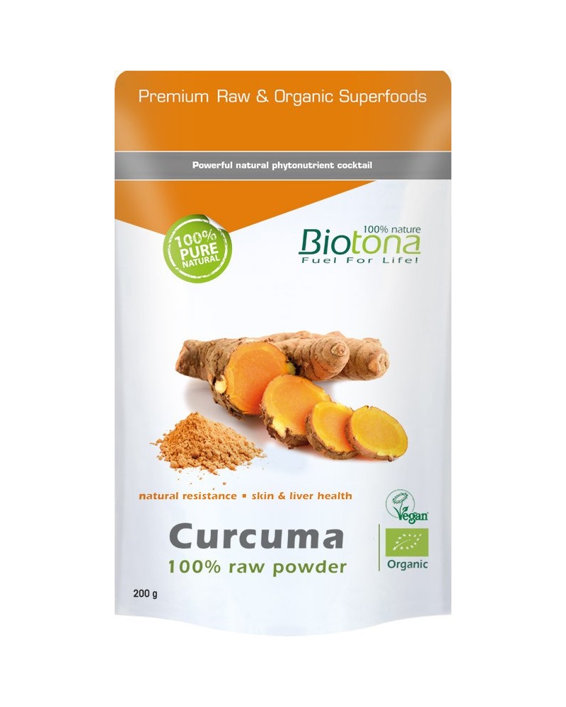 De kurkumawortels voor Biotona Bio Kurkuma Raw worden 100% biologisch gekweekt en na de oogst en de selectie gedroogd en verwerkt tot een poeder, dat qua smaak, geur en kleur erg dicht aansluit bij de verse wortel. Dit droogproces zorgt er ook voor dat de natuurlijk aanwezige voedingsstoffen en (fyto)nutriënten optimaal behouden blijven.