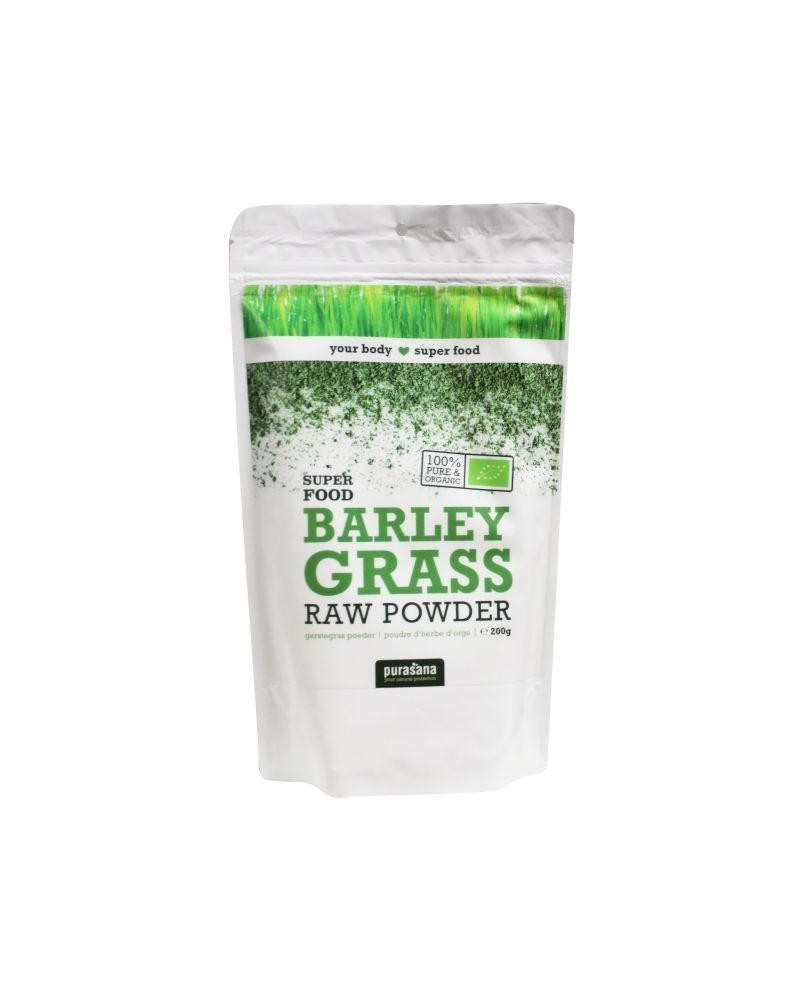 Purasana Barley Grass poeder wordt gewonnen uit jong, vers gerstegras. Na het oogsten wordt het gelijk gedroogd en verwerkt. Hierdoor is het 100% puur, raw en biologisch poeder zonder toevoegingen. Gerstegras poeder is van nature rijk aan vitaminen, mineralen, eiwitten, vezels, chlorofyl (bladgroen) en carotenoiden.