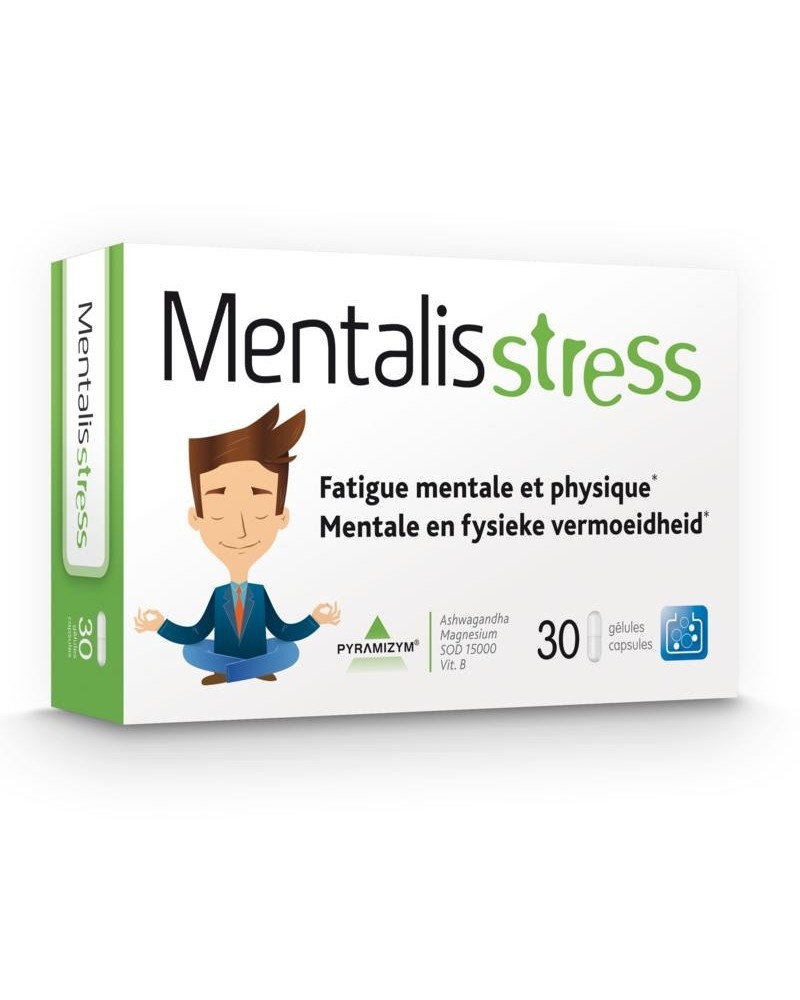Extract van ashwagandha (Withania somnifera L., KSM-66), Capsule: hypromellose. Geïnactiveerd Saccharomyces cerevisiae, Magnesium (magnesiumoxide), Draagstof: sucrose-esters van vetzuren, voorgegelatineerd rijstzetmeel, emulgator: zonnebloemlecithine, Vitamine B3 (nicotinamide) Superoxidedismutate (SOD), Voorgegelatineerd maiszetmeel, Vitamine B5 (calcium d-pantothenaat), Antiklontermiddel (siliciumdioxide), Vitamine B6 (pyridoxinehydrochloride), Vitamine B2 (riboflavine), Vitamine B1 (thiaminehydrochloride), Vitamine B9 (foliumzuur), Vitamine B8 (d-biotine), Vitamine B12 (cyanocobalamine)