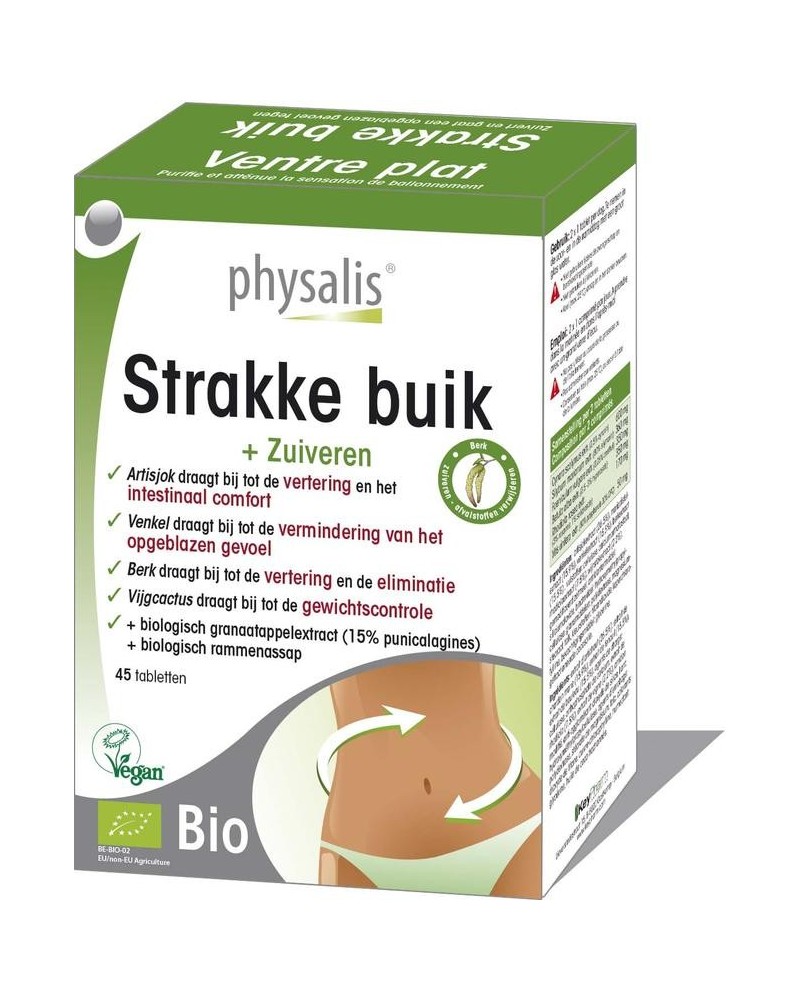 Physalis Strakke buik bio is een complete formule met hoogwaardige extracten van biologische planten aangevuld met extract van rammenassap en Pomanox®, een extract van granaatappel dat 15% punicalagines bevat!