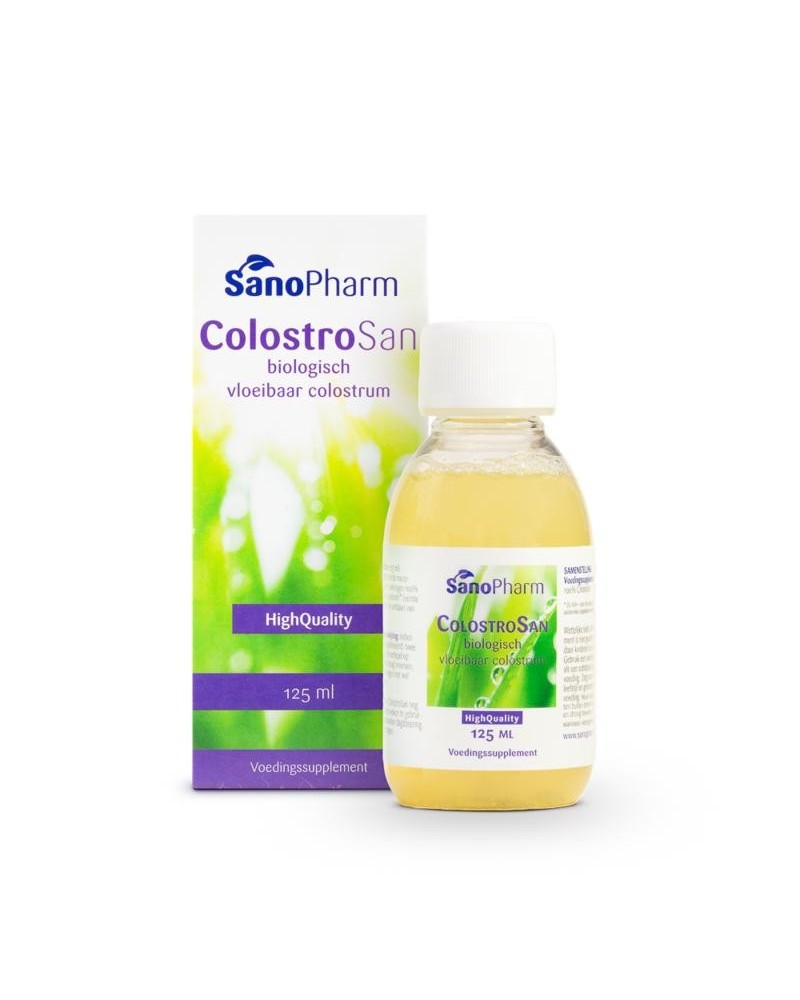 Colostrum is de eerste melk na de bevalling. SanoPharm’s ColostroSan is een gezuiverd natuurproduct. Het bestaat uit natuurlijke hormonen, immuunstoffen, aminozuren, vitaminen en mineralen.