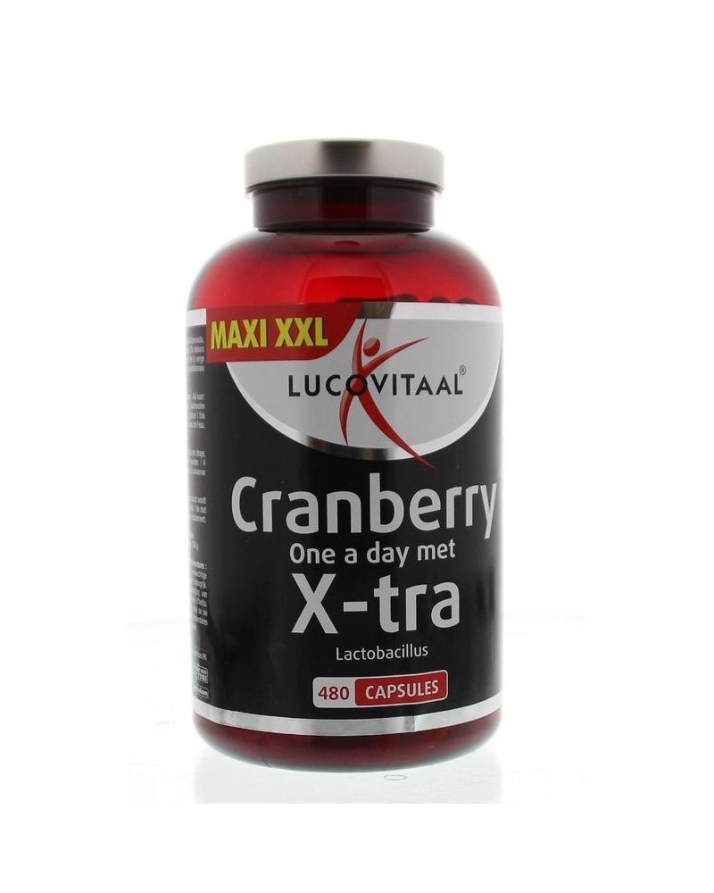 Cranberry met X-tra Lactobacillus van Lucovitaal® bevat naast het extract van cranberry’s ook Guldenroede, Beredruif en acerola-extract. Tevens is Lactobacillus toegevoegd.