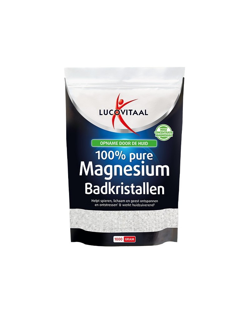 Bevat pure Magnesiumchloride welke door de huid wordt opgenomen. Een bad met Lucovitaal 100% pure Magnesium Badkristallen is de perfecte manier om te ontspannen na een lange dag of zware training. De Magnesium wordt opgenomen door het huidweefsel. ¹Het nemen van een (voet)bad met deze Magnesium Badkristallen bevordert het herstel, kalmeert en ontspant de gevoelige spieren. Het helpt tevens lichaam en geest te ontspannen en te ontstressen. ²Wanneer de kristallen als scrub onder de douche worden gebruikt, zullen dode huidcellen door de scrubwerking worden verwijderd en werken zo dus huidzuiverend.
