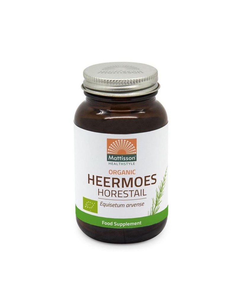 Biologische Heermoes (Equisetum arvense, bovengronds deel), HPMC vegetarische capsule (huls).