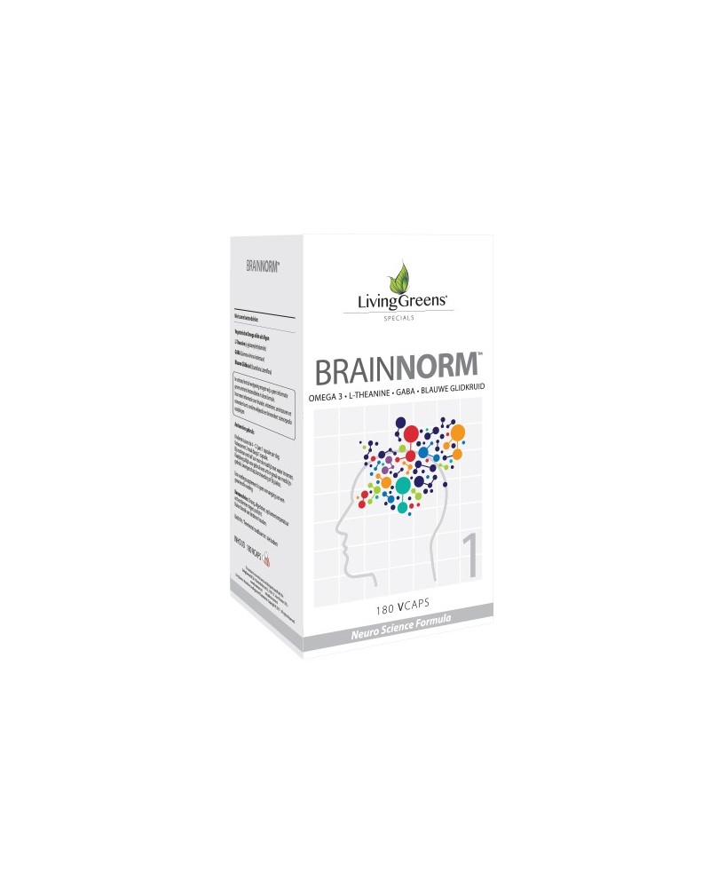 De 7 ingrediënten in Brainnorm 1 zijn: Natuurlijke Omega algen oliën, L-Theanine, GABA, Blauwe Glidkruid, Vitamine B12, Zink citraat en Bioperine.