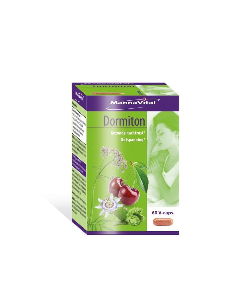 Dormiton is een natuurlijke totaalformule met de kruiden valeriaan, hop, passiebloem. Bevat eveneens een extract van zure kers en natuuridentieke melatonine.