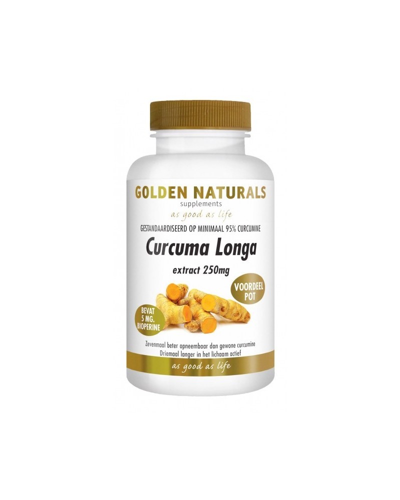 Golden Naturals Curcuma longa. Curcuma, ook wel geelwortel genoemd, is een geel kruid met een mild bittere smaak. Het wordt gewonnen uit de wortel van de plant curcuma longa, die behoort tot de gemberfamilie. Dankzij de zeer brede werking is curcuma een van de beste en bekendste kruidenpreparaten.
