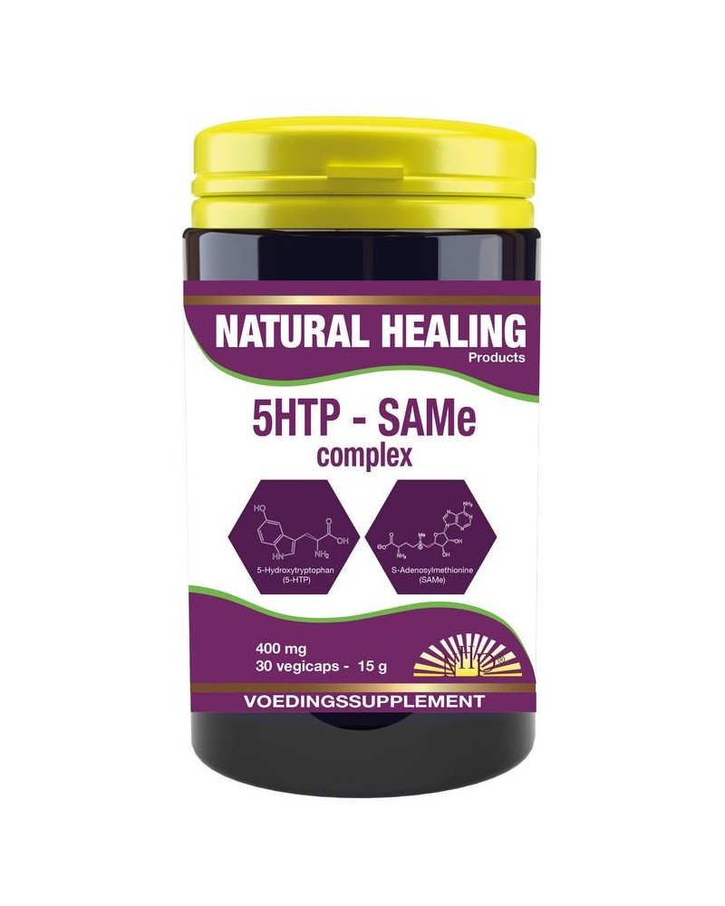 5HTP, SAMe, Magnesium, IJzer-gluconaat, Vitamine B3, Vitamine B5, Vitamine B6, anti-klontermiddelen: plantaardig magnesiumstearaat, siliciumdioxide, vegetarische capsule (pullulan).