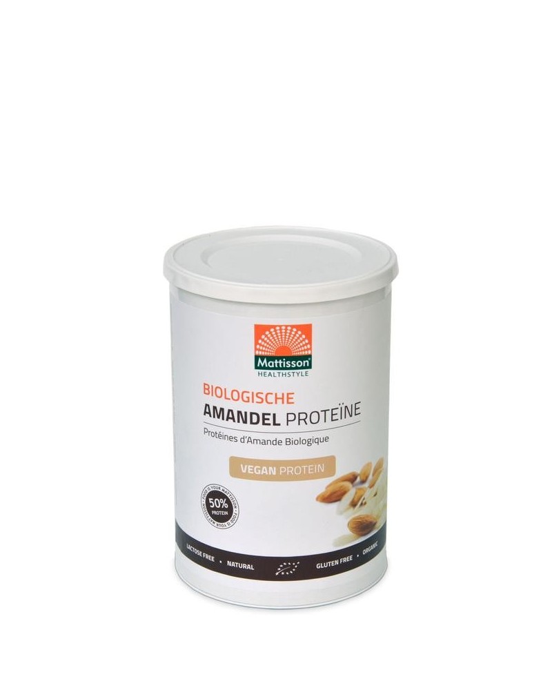 Biologisch Amandel proteïne is plantaardig en een goede vervanger van (dierlijke) eiwitbronnen zoals wei en soja proteïnen. Het heeft een hoog eiwitgehalte en is daardoor zeer geschikt voor sporters, mensen met een actieve levensstijl en ook voor diegene die plantaardige eiwitten willen gebruiken. Amandel proteïne is gemaakt van witte amandelen die zijn geperst, ontvet en zeer fijn vermalen. Hierdoor bevat het veel minder vet en veel meer eiwitten dan gewone gemalen amandelen.