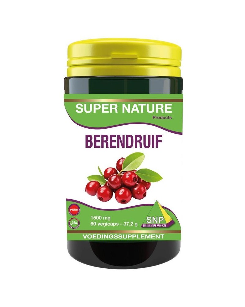 500 mg Berendruif- bladpoederextract (Arctostaphylos uva ursi, 3:1)