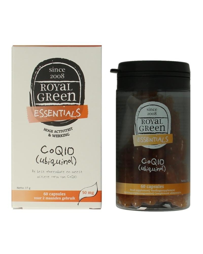 Royal Green CoQ10 levert de best opneembare en meest actieve vorm van co-enzym Q10, genaamd ubiquinol. Ubiquinol is de biologisch actieve en lichaamseigen vorm van Q10 en dus geen geoxideerde ubiquinon. Royal Green levert ubiquinol samen met vitamine C voor een krachtige werking. Royal Green CoQ10 is absoluut vrij van vulstoffen (waaronder diglycerylmono-oleaat, koolzaadolie, maiszetmeel), emulgatoren(soja lecithine), bevochtigingsmiddel (glycerol), stabilisatoren