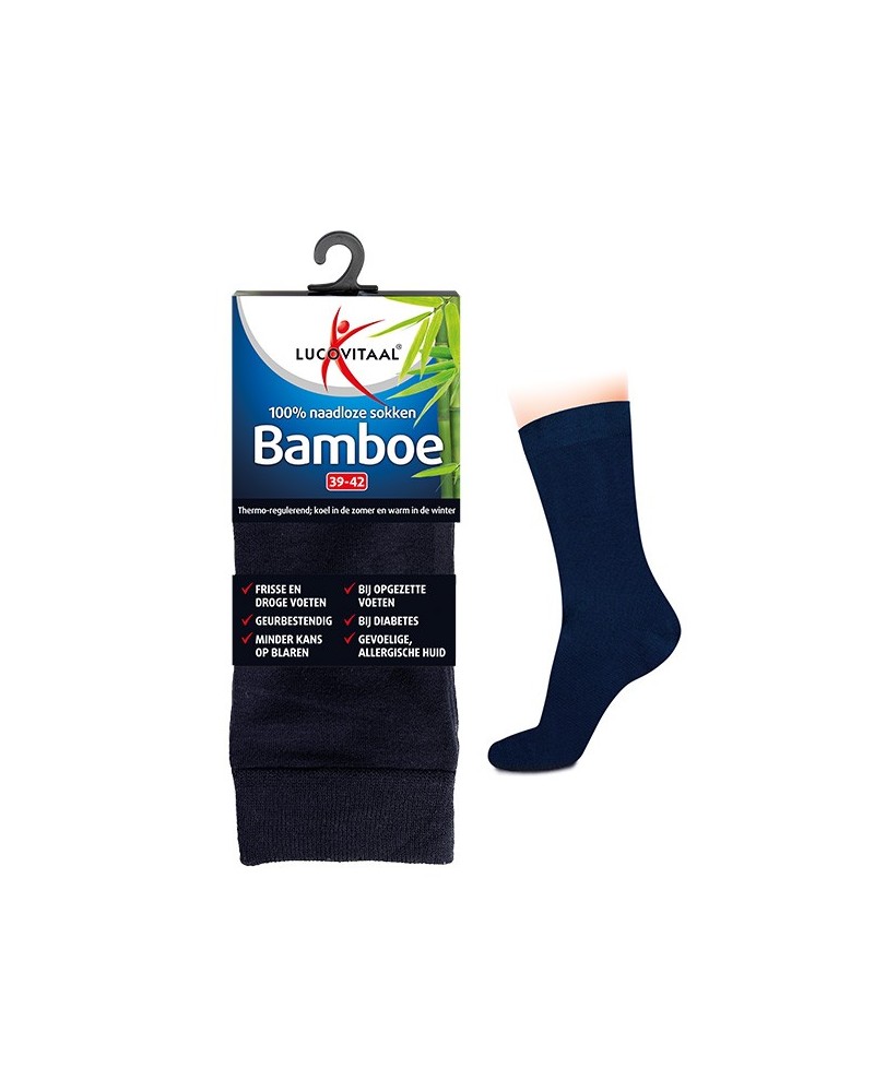 100% naadloze bamboe sokken. Thermo-regulerend; koel in de zomer en warm in de winter.
