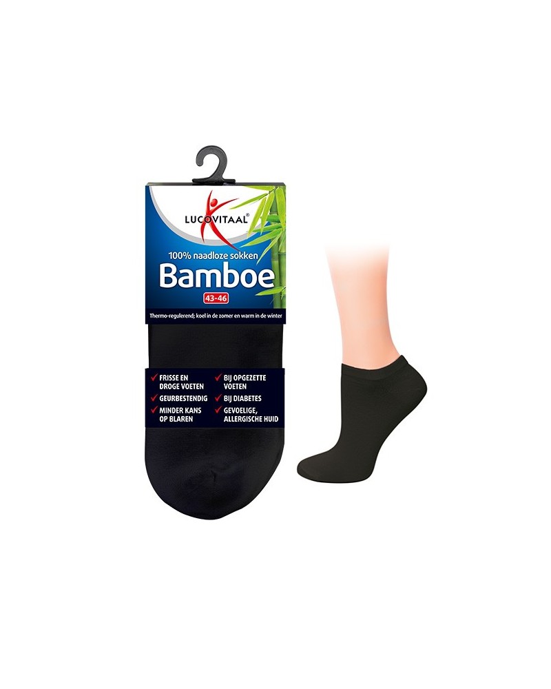 Lucovitaal Bamboe Sokken zijn zo super zacht dat je het moet voelen om te geloven. Bamboe draagt koeler in de zomer en warmer in de winter, doordat de microgaatjes in Bambolux® 4 x sneller zweet absorberen en verdampen. Voert vocht af van de huid en houdt de voeten fris en droog. Deze bijzondere sokken zijn hypoallergeen en anti-microbieel waardoor ze zeer geschikt zijn bij diabetes, opgezette en gevoelige voeten.